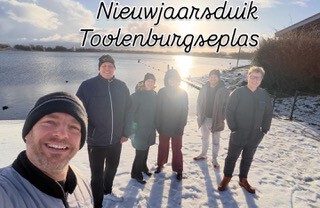 Een nieuwjaarsduik je in de Toolenburgseplas, Maarten, Dennis, Max en mijn persoon…